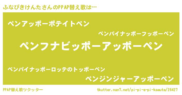 | 男性向けラノベタイトル風あだ名 | 『転生したらふなびきけんただった件』 |