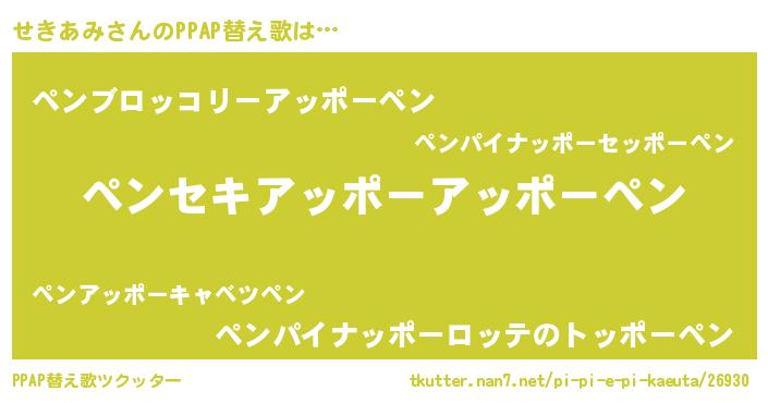 | 欧米人風あだ名 | 『せきあみ・ステッグマイヤー』 |