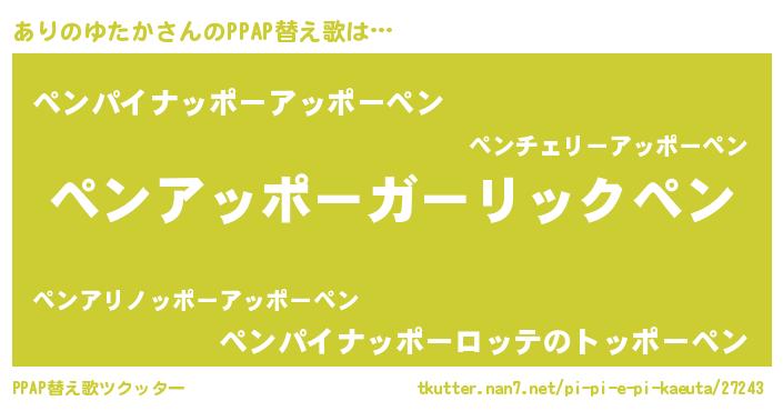 | 意味不明あだ名 | 『自称ありのゆたか』 |
