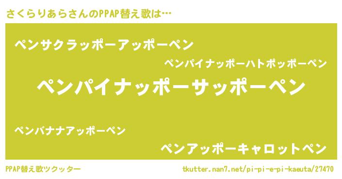 | 胡散臭い通販商品みたいなあだ名 | 『絶対に幸福をもたらす水素水…その名も「さくらりあら」』 |