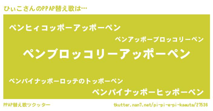 | ピコ太郎風あだ名 | 『ヒコ十郎』『ヒィ三郎』『ピコヒ郎』 |