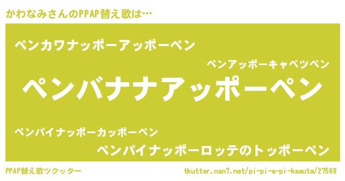 | ピコ太郎風あだ名 | 『カコ次郎』『カワ一郎』『カカ太郎』 |