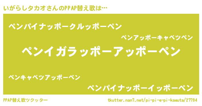 | 男性向けラノベタイトル風あだ名 | 『いがらしタカオに滅ぼされるだけの簡単なお仕事です』 |
