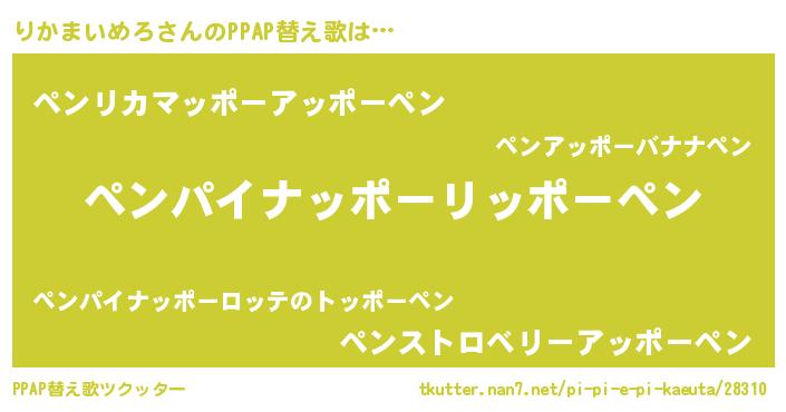 | 欧米人風あだ名 | 『ケンブリッジりかまいめろ』 |