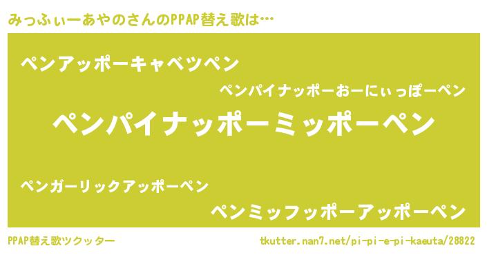 | 胡散臭い通販商品みたいなあだ名 | 『絶対に幸福をもたらす健康食品…その名も「みっふぃーあやの」』 |
