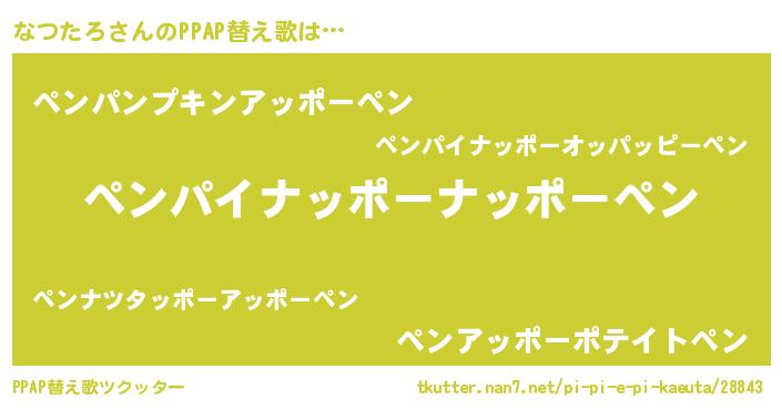 | 意味不明あだ名 | 『永久保存なつたろ』『ペロリンなつたろ』 |