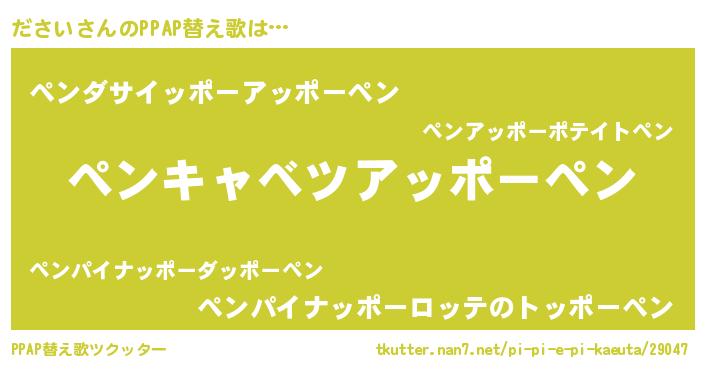 | ピコ太郎風あだ名 | 『ダコ四郎』『ダサ五郎』『ダダ太郎』 |