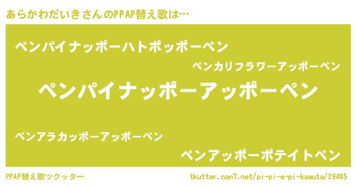 | ヘコむあだ名 | 『あらかわだいき(小並感)』『レバニラ』 |