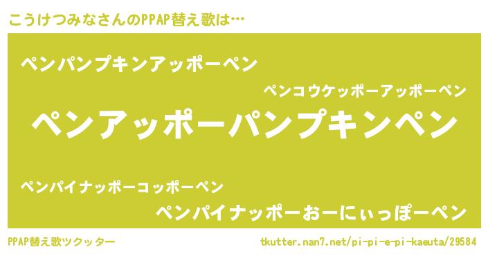 | 男性向けラノベタイトル風あだ名 | 『こうけつみな~年齢イコール彼女いない歴の魔法使い~』 |