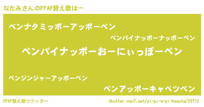 | ピコ太郎風あだ名 | 『ナナ太郎』『ナタ四郎』『ピナ八郎』 |