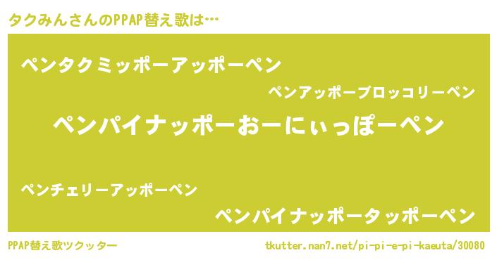 | 欧米人風あだ名 | 『ダニエルタクみん』『ウサインタクみん』 |