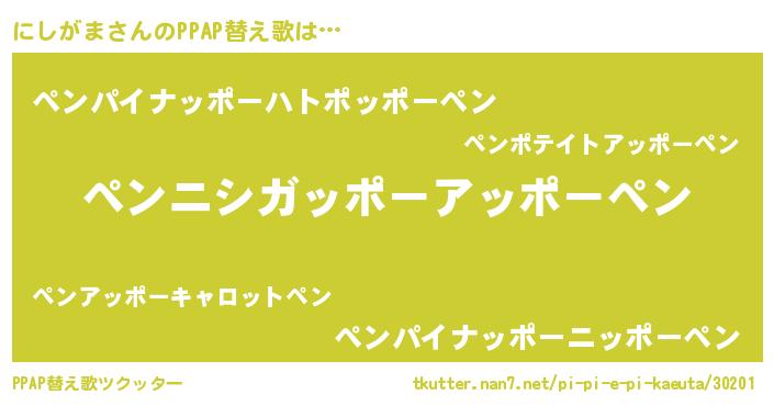 | ピコ太郎風あだ名 | 『ニシ一郎』『ニニ太郎』『ピコニ郎』 |