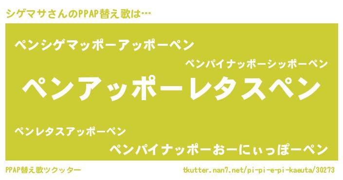 | ピコ太郎風あだ名 | 『ピシ史郎』『シゲ一郎』『シシ太郎』 |
