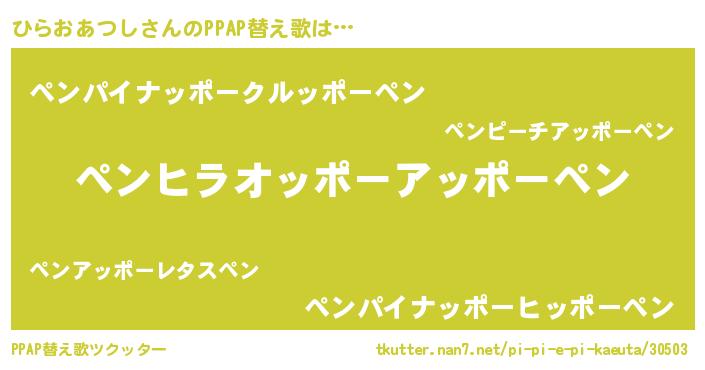 | 胡散臭い通販商品みたいなあだ名 | 『信頼と実績のサプリメント…その名も「ひらおあつし」』 |