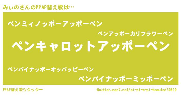 | ピコ太郎風あだ名 | 『ミコ八郎』『ミィ次郎』『ピコミ郎』 |
