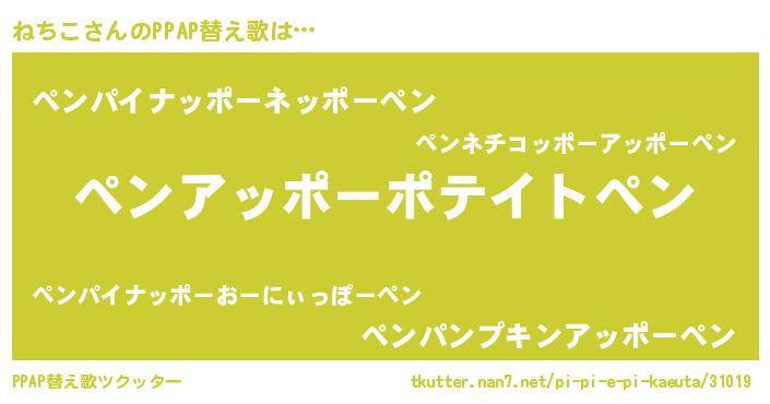 | ピコ太郎風あだ名 | 『ピネ五郎』『ピコネ郎』『ネコ一郎』 |