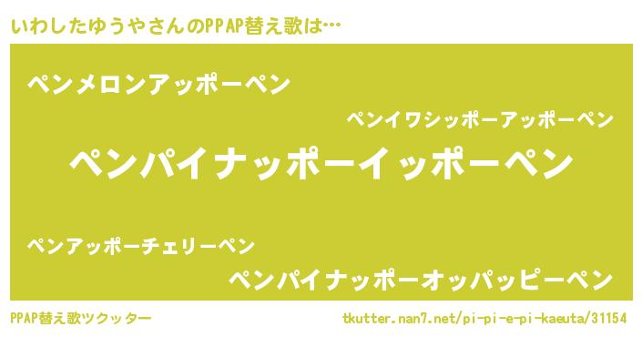 | 男性向けラノベタイトル風あだ名 | 『いわしたゆうや~年齢イコール彼女いない歴の魔法使い~』 |