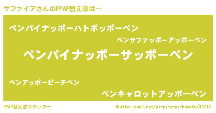 | 意味不明あだ名 | 『永久保存サファイア』『自称サファイア』 |