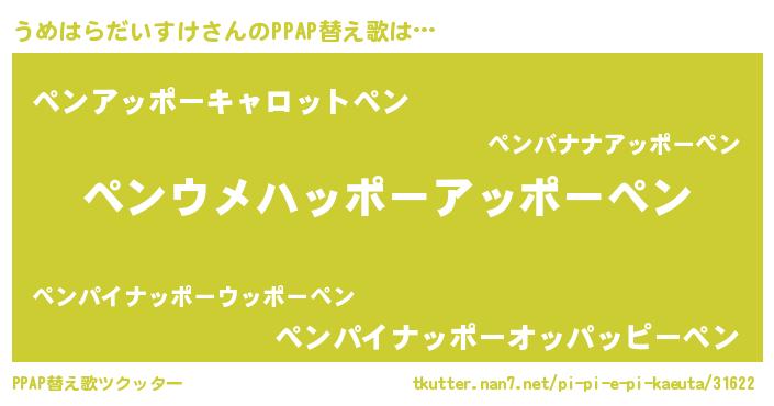 | ピコ太郎風あだ名 | 『ウメ六郎』『ピウ八郎』『ウウ太郎』 |