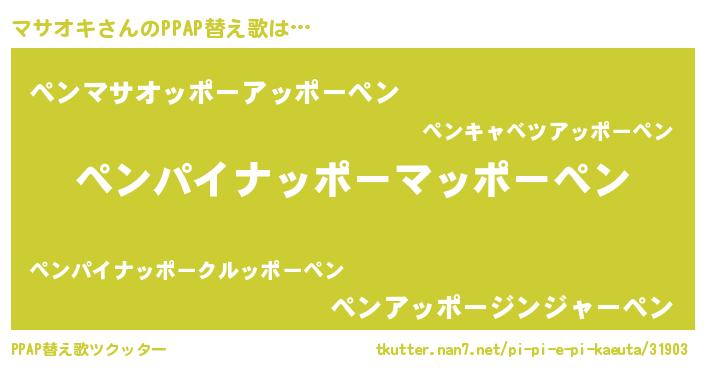 | ピコ太郎風あだ名 | 『ピコマ郎』『マサ三郎』『ピマ五郎』 |