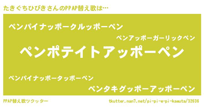 | ピコ太郎風あだ名 | 『タコ四郎』『タタ太郎』『タキ太郎』 |