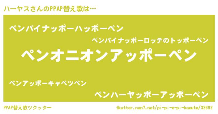 | 意味不明あだ名 | 『自称ハーヤス』『ペロリンハーヤス』 |