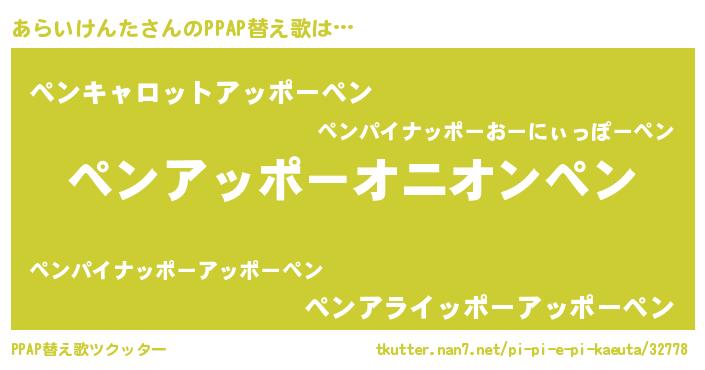 | 欧米人風あだ名 | 『アンジェラ・あらいけんた』 |