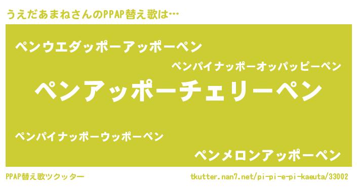 | ピコ太郎風あだ名 | 『ピウ一郎』『ウエ八郎』『ウコ太郎』 |