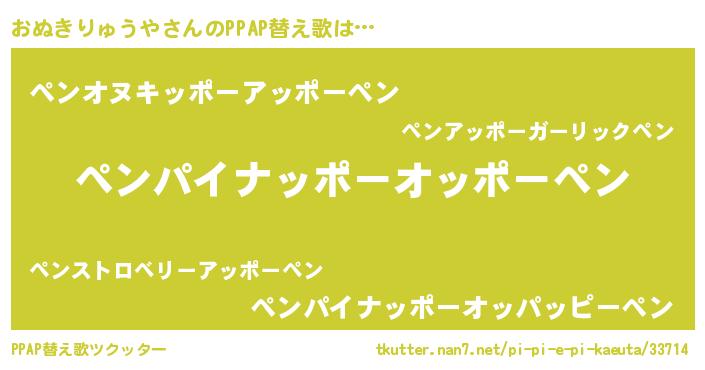| 欧米人風あだ名 | 『おぬきりゅうや・ステッグマイヤー』 |