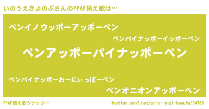 | 男性向けラノベタイトル風あだ名 | 『転生したらいのうえきよのぶだった件』 |