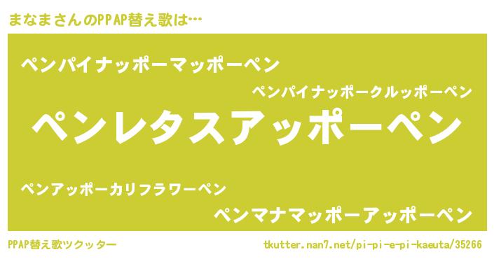 | 意味不明あだ名 | 『ペロリンまなま』『永久保存まなま』 |