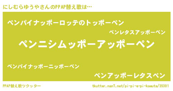 | ピコ太郎風あだ名 | 『ニシ史郎』『ニニ太郎』『ピニ四郎』 |