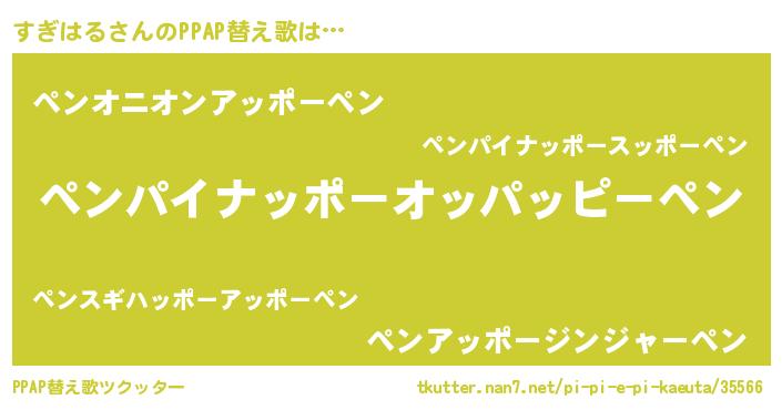 | 男性向けラノベタイトル風あだ名 | 『すぎはるに滅ぼされるだけの簡単なお仕事です』 |