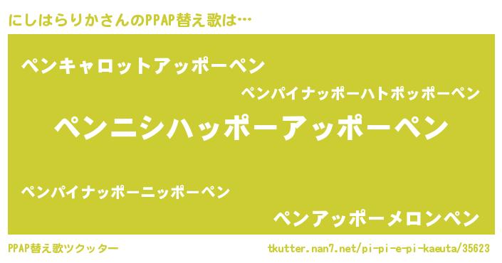 | ポケモン風あだ名 | 『ヒニシハラリカ』『ニシキング』 |