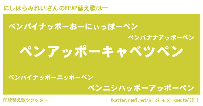 | 欧米人風あだ名 | 『にしはらみれいクリステル』 |