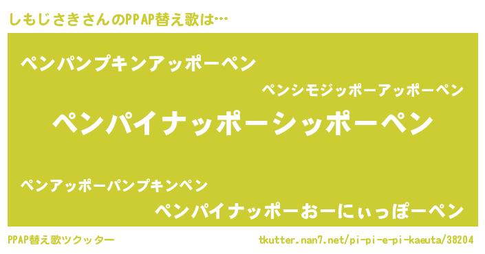 | ピコ太郎風あだ名 | 『ピコシ郎』『シコ二郎』『シシ太郎』 |