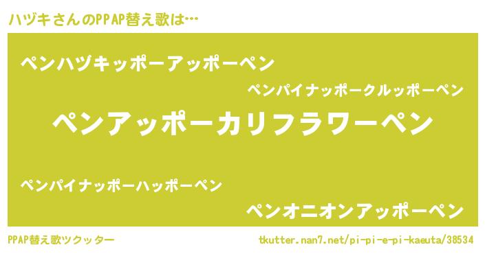 | ピコ太郎風あだ名 | 『ピハ二郎』『ハヅ八郎』『ハコ六郎』 |