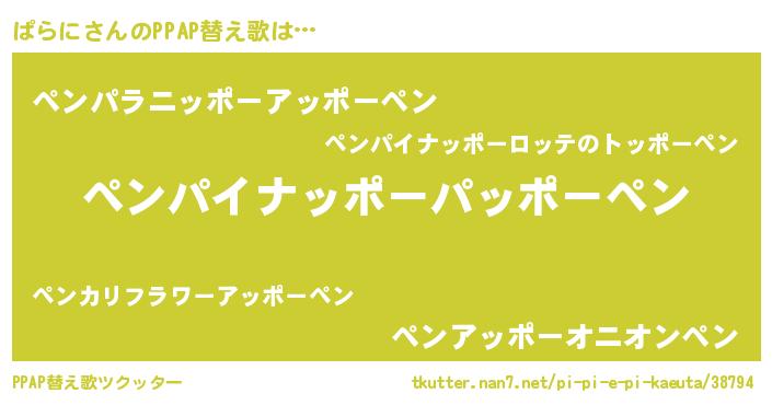 | ピコ太郎風あだ名 | 『ピコパ郎』『パラ五郎』『ピパ六郎』 |