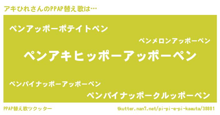 | ピコ太郎風あだ名 | 『アキ六郎』『ピア五郎』『アア太郎』 |