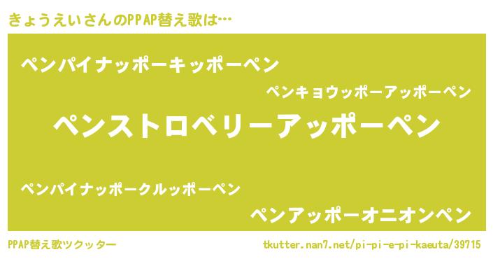 | 意味不明あだ名 | 『ペロリンきょうえい』『自称きょうえい』 |
