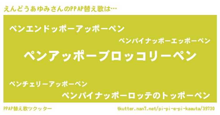 | 恥ずかしいあだ名 | 『エンドウアユミデラックス』『えんちん』 |