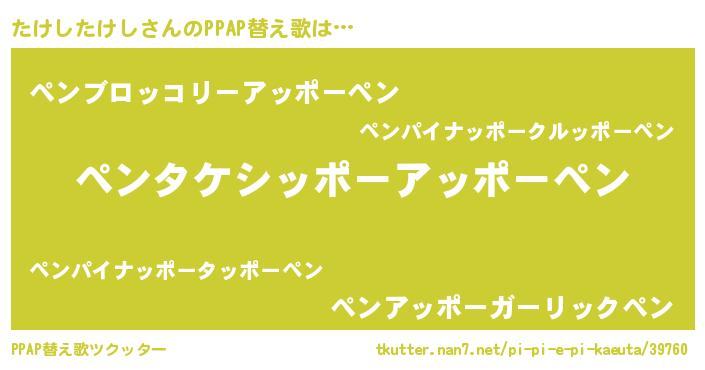 | ピコ太郎風あだ名 | 『タケ二郎』『タコ十郎』『ピタ二郎』 |