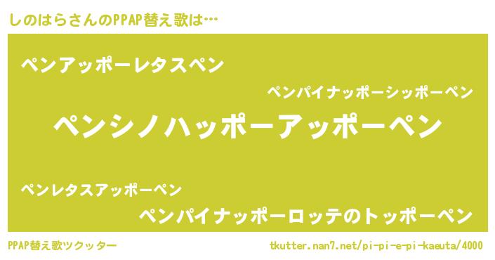 | ピコ太郎風あだ名 | 『シノ一郎』『ピシ四郎』『シシ太郎』 |