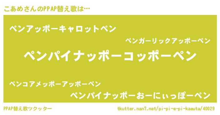 | ピコ太郎風あだ名 | 『ピココ郎』『ピコ八郎』『ココ太郎』 |