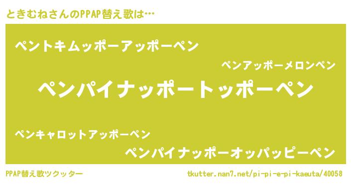 | ピコ太郎風あだ名 | 『ピコト郎』『トキ史郎』『トト太郎』 |