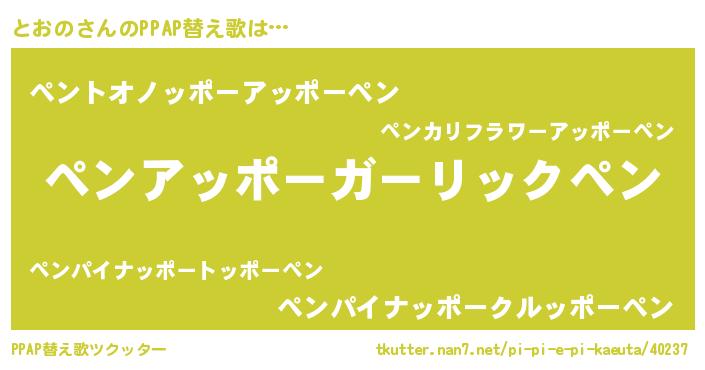 | ピコ太郎風あだ名 | 『ピト八郎』『トオ十郎』『トト太郎』 |