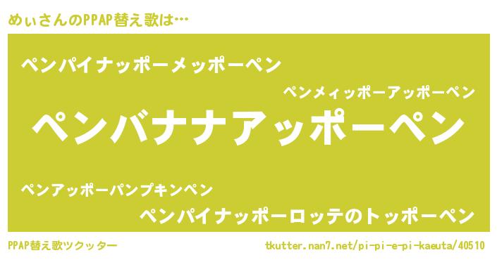| ピコ太郎風あだ名 | 『メコ次郎』『ピコメ郎』『メメ太郎』 |