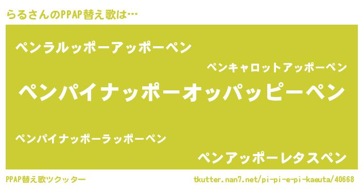 | ピコ太郎風あだ名 | 『ララ太郎』『ラル四郎』『ピラ史郎』 |