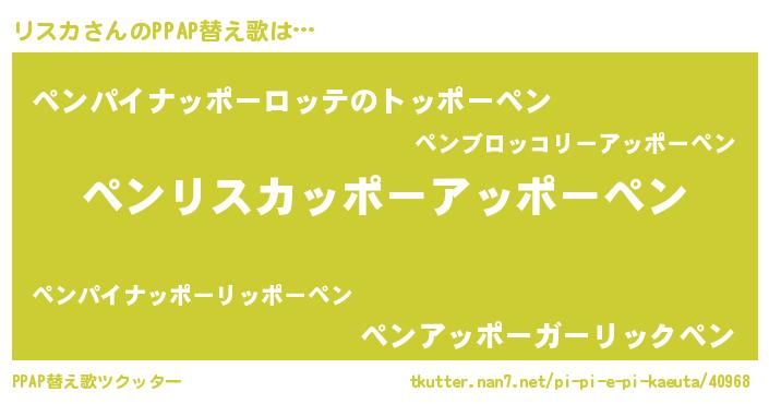 | ピコ太郎風あだ名 | 『リス八郎』『リリ太郎』『ピリ二郎』 |