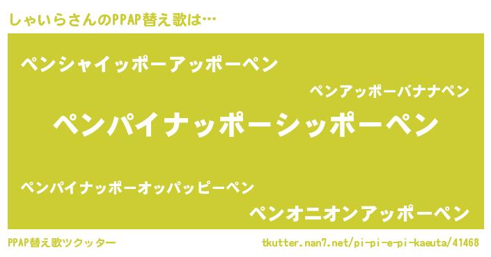 | ピコ太郎風あだ名 | 『ピコシ郎』『シャ太郎』『シコ六郎』 |